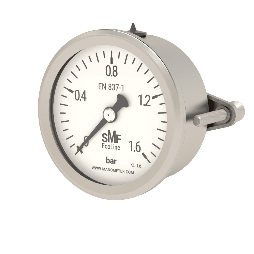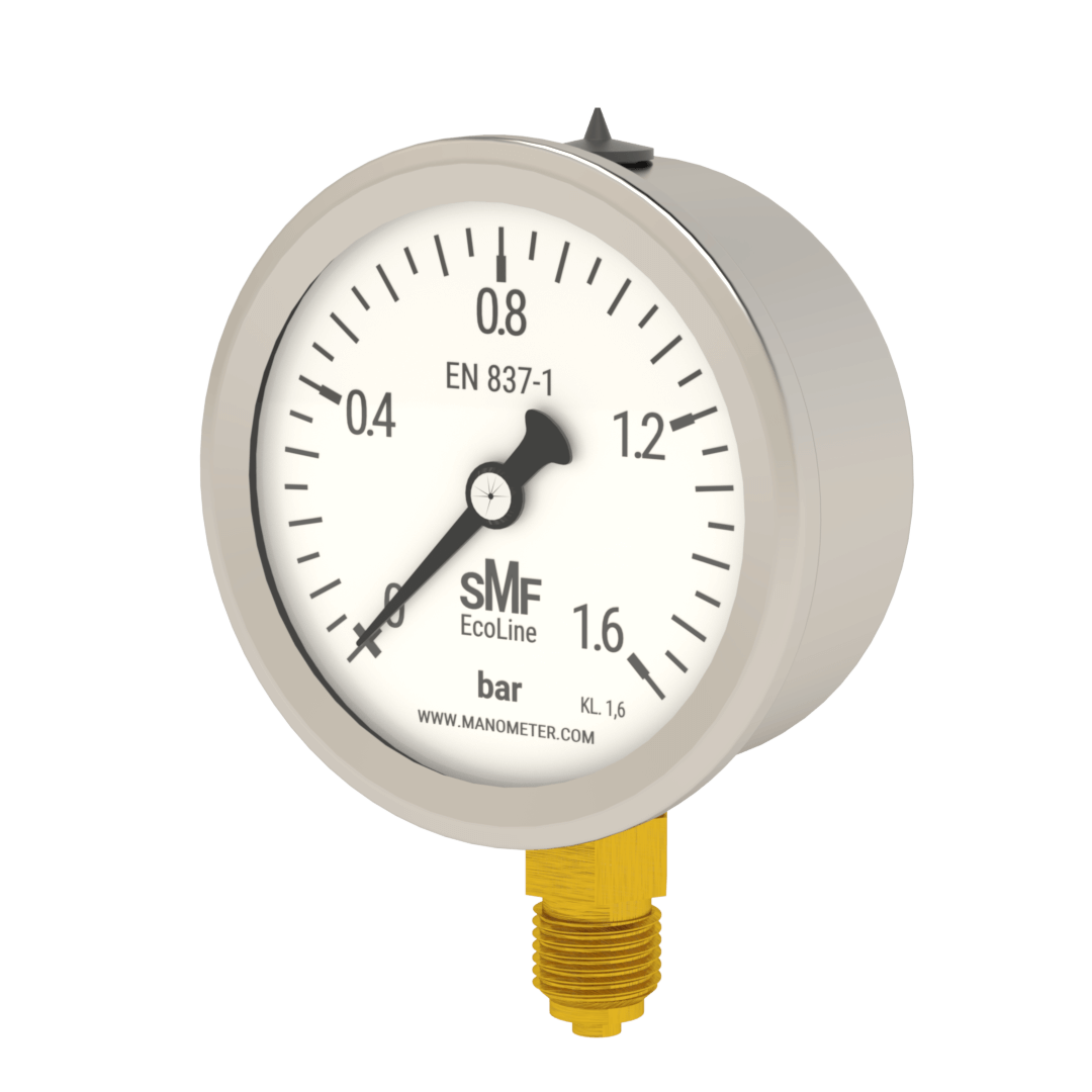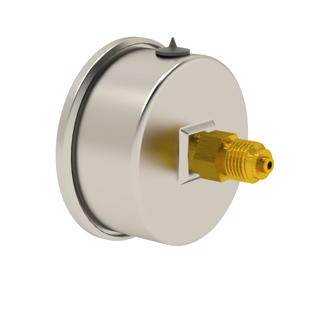 Enklare tryckmätare i vätskedämpat utförande för mätning av tryck i flytande eller gasformiga icke aggressiva mätmedier samt vid driftsförhållanden där vibrationer och tryckstötar förekommer.